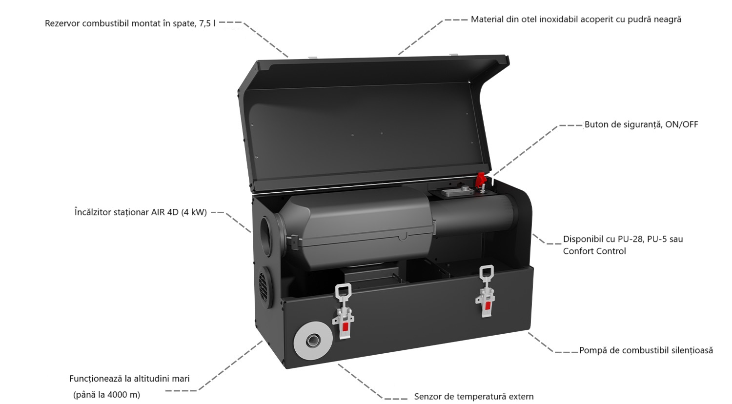 Opțiunile de încălzire nu reprezintă o problemă, deoarece pentru acest produs puteți alege între panoul de control Comfort Control, PU-28 sau PU-5.